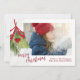 Ce design comprend une photo de Noël joyeuse vacances verdure, avec un 1 unique modèle photo, des baies sèches rouges et vertes, un feuille botanique verdoyant hiver verdoyant, avec branches de pins, un faux-fond rouge ruban aquarelle, un joli carte photo de Noël, avec une simple photo de famille minimaliste, un classique élégant Noël traditionnel, un script de calligraphie tendance