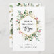 Ces magnifiques cartes de vacances non photo présentent un cadre géométrique doré avec des feuilles dorées assorties, une élégante verdure de Noël et des baies de houx rouges sur un fond blanc simple sans photo. La typographie tendance dit "Joyeuses Fêtes à vous". Il y a de la place pour un message personnel au dos.