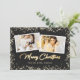 Élégant noir et blanc de buffle plaid photo newlyweds Joyeuse carte de Noël avec deux photos et une police de calligraphie saluant un arrière - plan noir orné de neige dorée, étoiles et lumières magiques de Noël brillantes. L'effet de feuille d'or n'est simulé que dans l'illustration. Personnalisez facilement cette carte de vacances photo avec vos photos et le nom de famille.