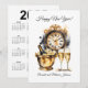 Fêtez la nouvelle année avec élégance ! Cette carte de vœux de Nouvel An exquise donne le ton pour une célébration glamour. La palette de couleurs noire et or sophistiquée, dans un style aquarelle, représente une horloge qui compte à rebours jusqu'à minuit, deux verres à champagne et un seau à champagne qui rafraîchit sur de la glace, promettant une année inoubliable. Le dos présente un calendrier pratique pour que votre destinataire puisse en profiter toute l'année. Avec des détails modifiables, personnalisez cette carte de vœux pour la rendre unique. Élevez votre Nouvel An et laissez une impression durable avec cette carte intemporelle et élégante ! À une année de joie, de rires et d'une nouvelle année splendide à venir ! Modifiez le texte depuis la page du produit ou utilisez l'outil de conception pour changer le style ou la couleur