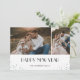 Photo noire moderne Carte Joyeuse du Nouvel An avec deux photos sur le devant et la chute de neige sur un arrière - plan noir à l'arrière. Personnalisez facilement cette carte de vacances photo avec vos photos et le nom de famille. Plus d'options de couleur disponibles, ou customisez cette carte avec votre couleur préférée à l'aide de l'outil de conception.