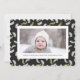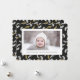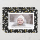 Envoyez des salutations de vacances personnalisables et personnalisées à vos amis, vos collègues et votre famille en cartes photos simples, minimalistes, élégants, amusants, festifs et modernes ! Un beau cadre de variété d'or et blanc feuilles de pin de Noël Mistletoe sur arrière - plan noir entoure votre photo sur papier rond de coquille Saint-Jacques. Le message d'accueil personnalisé "Joyeux Noël" et votre nom de famille sont caractéristiques de la typographie moderne. Reverse pour révéler une belle l'arrière - plan motif feuille de Noël Mistletoe Pine Tree.