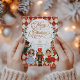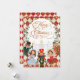 Ce design fantaisiste présente des personnages magiques de l'un des contes de Noël les plus aimés de tous les temps, The Nutcracker, et élégante couronne de verdure sur un motif festif en damier en diamant en rouge, blanc vintage et or.