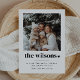 Cette conception de carte de vacances présente une mise en page épurée et moderne avec un espace photo carré pour l'image de votre famille. Sous la photo, le nom de votre famille est affiché avec élégance avec un petit détail de cœur, ajoutant une touche de chaleur. Les vœux de vacances sont joliment disposés en dessous dans deux polices contrastées, créant une salutation saisonnière élégante mais minimaliste.