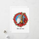 Carte photo de voeux de vacances avec un joli gnome dans une couronne de fleurs poinsettia. Oeuvre de : AMBillustrations©