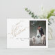 Cette belle, moderne Notre premier Noël Gold Script Photo Mr. & Mrs Holiday Card présente votre photo mariage verticale sur la droite dans un cadre blanc, et les mots "nos premiers noël" dans une célèbre typographie de calligraphie fausse feuille d'or. Personnalisez ci-dessous avec vos noms et votre année, dans une belle police sans serif moderne. Le dos de la carte présente une belle scène de forêt d'aquarelle verte. Une belle carte pour votre premier Noël en tant que mariés ! Merci tant pour soutenir notre petite entreprise, nous l'apprécions vraiment! Nous sommes si heureux que vous aimiez ce design autant que nous, et aimeriez que vous soyez invitation de faire partie de notre nouveau groupe Facebook privé Mariage Conseils de planification pour les épouses occupées. Rejoignez pour recevoir les dernières nouveautés sur les ventes, les nouvelles versions et plus encore! https://www.facebook.com/groups/622298402544171 Copyright Anastasia Surridge, tous droits réservés.