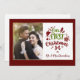Notre premier Noël en tant que M. & Mme Monogramme : un cadre de parties scintillant faux rouge et une typographie moderne élégante et ornementale. Utilisez l'outil Personnaliser pour ajouter votre nom et votre texte à l'arrière.