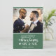 Célébrez votre premier Noël en tant que Mr et Mr avec cette carte de vacances mignonne avec un modèle photo personnalisable et une belle légende en polices blanches et tendance sur un arrière - plan vert festif.