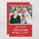 Célébrez votre premier Noël en tant que Madame et Madame avec cette carte de vacances mignonne avec un modèle photo personnalisable et une belle légende en polices blanches sur un arrière - plan rouge festif.