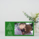 Vous venez de vous marier et fêtez votre premier Noël ensemble en tant que mariés. Customisez l'élégant Notre premier Carte photo vert de Noël avec votre propre photo et texte mariage personnel. Cette belle carte de vacances 1st xmas personnalisée présente une conception complexe d'arbre de Noël blanc sur un arrière - plan vert.