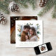 Célébrez votre premier Noël avec notre première carte de Noël Carré botanique séchée par Noël. Doté d'une bordure de verdure fleurie et d'un cadre carré, il ajoute une touche d'élégance naturelle à cette précieuse saison de votre vie. Personnalisez-le avec deux de vos photos préférées et des informations personnelles pour créer un souvenir que vous allez chérir. Cherchez plus d'options dans notre collection de Noël !