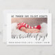 Ce faire-part de naissance de vacances minimaliste dispose d'un modèle photo sur le devant de la carte et d'une photo de fond plein sur le dos de la carte. La typographie est moderne avec une touche de fantaisie !