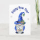 Cartes Pour Fêtes Annuelles Nouveau Gnome Bleu de l'Année avec Horloge