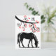 Célébrez le Nouvel An chinois du cheval avec cet élégant cheval en silhouette sous un arbre stylisé en fleurs rouges. Le design se déroule à l'intérieur de la carte.