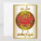 Cette carte de vœux, à l'occasion du début de la nouvelle année persane, présente une combinaison de couleurs accrocheuse à l'arrière-plan et une ligne de vœux de « Bonne Année » en farsi au premier plan. La nouvelle année persane, appelée « Nowruz », c'est-à-dire « Nouveau Jour », commence le premier jour du printemps. La ligne au premier plan se lit « Nowruz Mubarak », ce qui signifie « Bonne Année ».