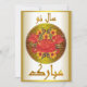 Cette carte de vacances, à l'occasion du début de la nouvelle année persane, présente une combinaison de couleurs accrocheuse en arrière-plan et une ligne de vœux de « Bonne année » en farsi au premier plan. La nouvelle année persane, appelée « Nowruz », c'est-à-dire « Nouveau Jour », commence le premier jour du printemps. La ligne au premier plan se lit « Nowruz Mubarak » ce qui signifie « Bonne année ».