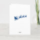 Des flocons de neige blancs, le Père Noël avec son traîneau et son renne sur un arrière - plan de vinification bleu. Texte devant la carte en russe - Joyeux Nouvel An ю. Texte intérieur en russe aussi : Laissez le Nouvel An entrer dans votre maison avec chance et bonheur et que tous vos rêves deviennent réalité.