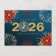 Un beau design de Nouvel An chinois avec le chiffre 0 de l'année 2026 sous la forme d'un médaillon de cheval stylisé avec une texture de paillettes dorées. Souhaitez bonne chance et prospérité à vos proches avec cette carte de vœux bleue océan et dorée. Vous pouvez modifier le message au verso de la carte ou le laisser tel quel.