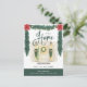 Cette carte postale de Noël colorée et festive dit "nouvelle maison pour les vacances", avec une belle maison aquarelle décorée pour la saison. Des guirlandes vertes ornées de fleurs de poinsettia rouges ornent l'avant, ainsi qu'un brin de lampes à cordes et une typographie moderne branchée.