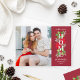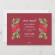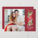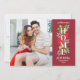 Cette carte de Noël moderne à la typographie florale pour les nouveaux propriétaires sert de carte de faire-part mobile! Annoncez votre nouvelle adresse à votre famille et à vos amis au début de la saison des cartes de vacances. L'élégante carte comporte une photo adjacente à une aquarelle fleurie et verdoyante d'hiver avec une simple et moderne présentation de texte "Home". Comprend des feuilles saints et des baies, des fleurs de poinsettia et des branches feuillues. Le libellé personnalisé inclut "nous avons une nouvelle maison pour les vacances" ainsi que le texte à l'avant et à l'arrière qui peut être personnalisé. Arrière - plan rouge riche aux couleurs rouge, vert, gris et blanc.