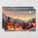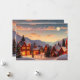 Un joli village de Noël la nuit illuminé de lumières de Noël et de montagnes enneigées. Une jolie carte festive à laquelle vous pouvez ajouter votre propre message de vacances personnalisé et des noms!