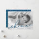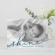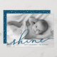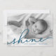 Partagez vos salutations de vacances avec ces cartes photos Hanoukka chic avec votre photo préférée à fond saigné horizontal ou orienté paysage. "Shine" apparaît comme une superposition de texte bleu océan dans une élégante typographie manuscrite. Personnalisez avec vos noms et l'année en bas. Les cartes sont inversées pour correspondre au bleu foncé avec une superposition enneigée.
