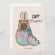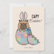 Capybara Bunny Hatching Egg Pâques Carte de vacances Capybara personnalisée, portant des oreilles de lapin, hachant un oeuf coloré Carte de Pâques avec l'expression "Capy Pâques". Utilisez l'outil de conception pour modifier les polices et les couleurs pour créer votre propre conception unique.