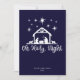 Simple et adorable Oh Sainte Nuit calligraphie avec nativité sur fond bleu marine. Espace pour le nom de votre famille et l'année ainsi que pour une photo de famille et un court message au dos. Voir les articles coordonnés dans notre boutique, Enchanted Finch.
