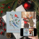 Illustration originale d'oiseaux d'hiver se reposant sur des branches de houx avec une photo sur le côté. Personnalisez le verso comme vous le souhaitez.