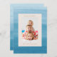 Célébrez l'Hanoukka en beauté avec cette carte de vacances photo personnalisée avec un teint en dégradé foncé en bleu océan. Le mélange serein de couleurs crée un décor moderne et élégant pour votre photo préférée, ce qui en fait la façon idéale d'envoyer des voeux et de la joie chaleureux pendant le Festival des Lumières. Personnalisez-le avec votre message pour un accueil de vacances unique!