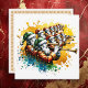 Carte personnalisée sur le thème des douze jours de Noël. Illustration aquarelle de onze joueurs de pipeau.