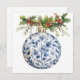 Ornement Boule Chinoisserie Bleu avec Houx Vert carte 5 x 5