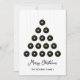 Cette carte de Noël moderne et simple présente 15 ornements de disque de vinyle noir et or suspendus sur fond blanc avec une ficelle dorée. Modifiez votre message de Noël et le nom de votre famille.