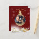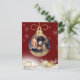 Joli ornement de Noël or avec votre photo préférée ajoutée pour personnaliser pour toute votre famille et vos amis. arrière - plan rouge. La carte parfaite pour la personne à un budget.
