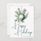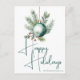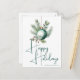 Cette superbe carte de Noël à typographie verte présente une belle aquarelle d'un ornement de fête et de feuilles de pin au-dessus d'une élégante écriture manuscrite indiquant Joyeuses Fêtes. Ces cartes de vœux modernes non photographiques sont un choix tendance et chic pour une famille élégante.
