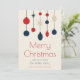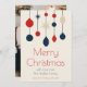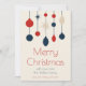 Jolie carte de Noël rétro avec des ornements vintage de style 70 en rouge, bleu et ivoire au-dessus du nom de votre famille. Belles cartes de vacances nostalgiques avec votre photo de famille verticale complète au verso.