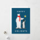 Ours et Pinguin debout avec écrit Joyeuses Fêtes. Carte de vœux appropriée pour la période des fêtes.