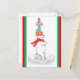 Cette carte de poste de vacances présente une jolie image vintage d'un ours polaire portant une écharpe rouge et portant sur sa tête un certain nombre de cadeaux de Noël enveloppés de couleurs vives. L'image est placée sur un arrière - plan blanc d'hiver, et encadrée dans le vert et le rouge des vacances vives. Mignonne et unique ! Le dos de la carte offre beaucoup de place pour votre message personnalisé. Célébrez Noël de la manière démodée ! Pour des centaines d'images de Noël vintages et contemporaines sur une variété de produits, consultez la section "Noël" de notre magasin.