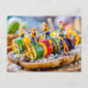 Cartes Pour Fêtes Annuelles ouvriers miniatures préparant des brochettes de lé