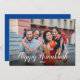 Envoyez vos salutations Hanoukka avec une photo de famille pleine taille sur le devant avec des polices blanches complémentaires de "Happy Hanoukka" et l'année en cours en bas de la photo. L'envers a un arrière - plan bleu vif avec un message à garder ou à personnaliser et un endroit pour votre nom familial ou individuel. Deux menorahs simples et une colombe de paix sont au sommet pour une touche décorative. Ajoutez votre photo et éditez du texte en cliquant sur le bouton "Personnaliser" et en utilisant les champs de modèle fournis. Message-moi si l'aide est nécessaire !