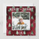 Typographie joyeuse et lumineuse. Faux métallisé rouge avec des sapins métallisés verts avec votre photo préférée au centre. Personnalisez avec votre message et votre nom au verso. La carte de vœux de Noël parfaite.