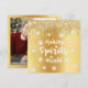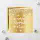 Typographie moderne de texte manuscrit disant MAKING SPIRITS BRIGHT accentuée de lumières scintillantes sur un fond chic avec un effet de goutte de paillettes dorées à l'avant avec votre photo et votre message personnel au dos. MODIFICATIONS : Modifiez le style, la taille, la couleur et le placement du texte en cliquant sur PERSONNALISER DAVANTAGE. CONSEIL PHOTO : Pour des résultats plus rapides/meilleurs, choisissez une photo avec le sujet au milieu et/ou recadrez-la en forme carrée AVANT de la télécharger. Contactez le concepteur via Zazzle Chat ou makeitaboutyoustore@gmail.com si vous souhaitez que ce design soit modifié, sur un autre produit ou si vous souhaitez des articles coordonnés.