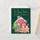 Cette carte postale de Noël personnalisée présente une jolie aquarelle illustrant les gens en pain d'épice. Un petit homme et une dame en pain d'épices se tiennent devant leur maison colorée en pain d'épices. Un joli arbre décoré se trouve sur la gauche. L'arrière - plan est de couleur vert foncé.