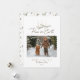 Paix sur Terre Script Photo moderne Carte de Noël. Votre photo est recadrée dans un cadre lunatique à coquilles Saint-Jacques. Au-dessus se trouve "Peace on Earth" dans une police élégante de style manuscrit avec une branche à feuillage persistant rustique dessinée à la main avec des bougies. Au bas de la carte se trouve votre salutation, votre nom de famille et votre année. Le dos de la carte est doté d'un motif sans couture de branches, de pinecones et de bougies. © Kimbellished, LLC