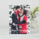 Cette carte photo de Noël comporte un cadre photo vertical sur le devant. Le texte de calligraphie blanche, sur la photo, dit "Paix et Bénédictions". L'arrière est rouge avec un motif de flocon blanc. Le texte personnalisé, situé en bas de l'arrière, vous permet d'ajouter votre propre message personnel.