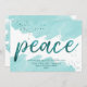 Cette carte de Noël turquoise "peace" en aquarelle est la parfaite et élégante salutation de vacances. Le design comprend des pinceaux d'aquarelle bleu turquoise doux avec une touche de brillants faux turquoises et le mot festif "peace" en faux papier turquoise. Personnalisez la carte avec votre nom de famille, vos prénoms et votre année. Remarque : Cette conception ne comporte pas de parties scintillant ou de feuille turquoise réelle. C'est un graphisme de haute qualité fait pour ressembler à un shimmer turquoise.