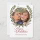 Peace on Earth Le carte photo de Noël dispose d'une couronne de baies sèches, d'un texte et d'une bannière qui dit Paix sur Terre Soyez bons les uns aux autres, d'un texte rouge qui dit Joyeux Noël, une zone que vous pouvez facilement ajouter photo et votre nom! Le dos est vert olive avec le texte Paix sur Terre en blanc. Simple mais élégant. Photographie © Storytree Studios, Stanford, CA