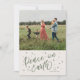 La "Carte de Noël Paix sur Terre Lettering Photo Holiday" avec un arrière - plan vert sage apaisant dégage un esprit de vacances calme et serein. La "Paix sur Terre" à l'écriture blanche flotte sans effort, créant une élégance sobre qui se sent à la fois décontractée et chaleureuse. Le style manuscrit ajoute une touche personnelle, ce qui donne à la carte l'impression d'être une note attentionnée d'un ami cher. La douce toile de fond verte évoque un sentiment de paix et de renouveau, saisissant parfaitement le sens profond de la fête. Il s'harmonise parfaitement avec la photo de famille, permettant à vos souvenirs chéris de prendre le centre de la scène tout en maintenant un sentiment de chaleur et de connexion. Ce design séduit les familles qui apprécient la simplicité et l'expression chaleureuse. Les tons apaisants et l'écriture manuscrite authentique invitation un sentiment d'unité et de réflexion, faisant de cette carte non seulement un accueil saisonnier, mais un message d'amour et de paix, enveloppé dans un charme doux et naturel. Il est parfait pour ceux qui souhaitent partager un moment de tranquillité et de proximité pendant la période des fêtes.