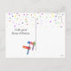 Bonne carte de voeux Purim. Traduction de Hébreu : Happy Purim ! Poster de Purim Jewish Holiday avec étoiles de David, biscuits traditionnels Hamantaschen, tondeuse de jouets gragger, ballons, musiciens, masques, panier Purim sur un arrière - plan de confetti festif. Souhaitez une grande fête de Purim. Carnaval, Mascarade, Festival, Fête des Enfants, Israël. Invitations et papeterie > Cartes de voeux > Cartes cadeaux de vacances et de saison. Conception avec modèle texte. Personnalisez-les en ajoutant un nom ou un texte de voeux.