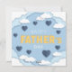 Bonne Fête des pères design mignon, papa je t'aime texte jaune, nuages blancs et coeurs bleus dans le ciel, dessin animé en papier 3d